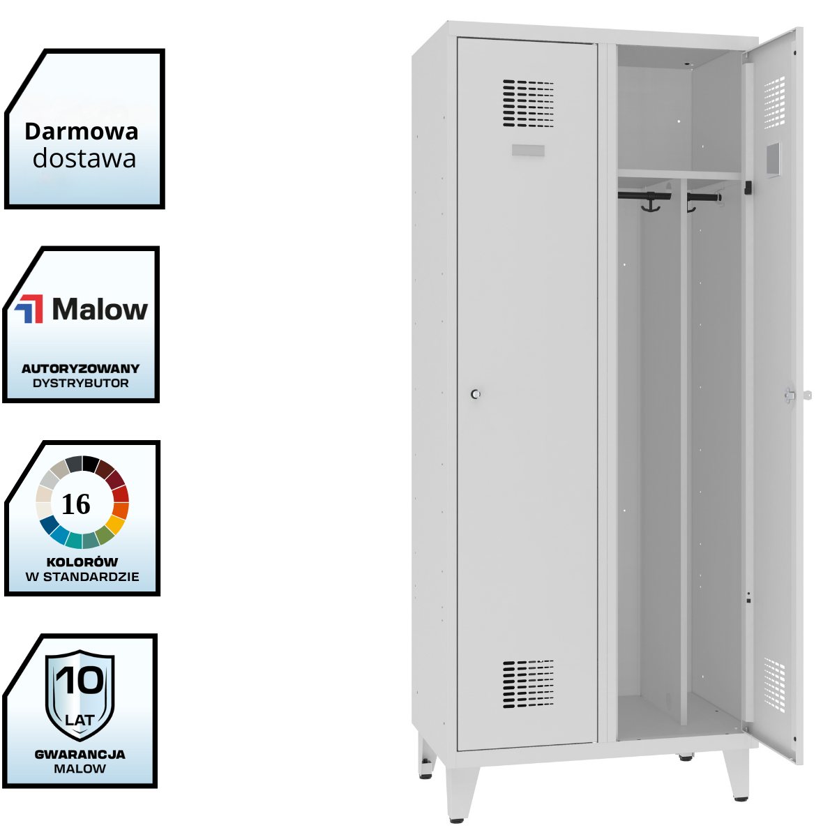 Szafa ubraniowa metalowa na nóżkach z przegrodą Sum 421 W Malow - 2 drzwiowa szafa metalowa