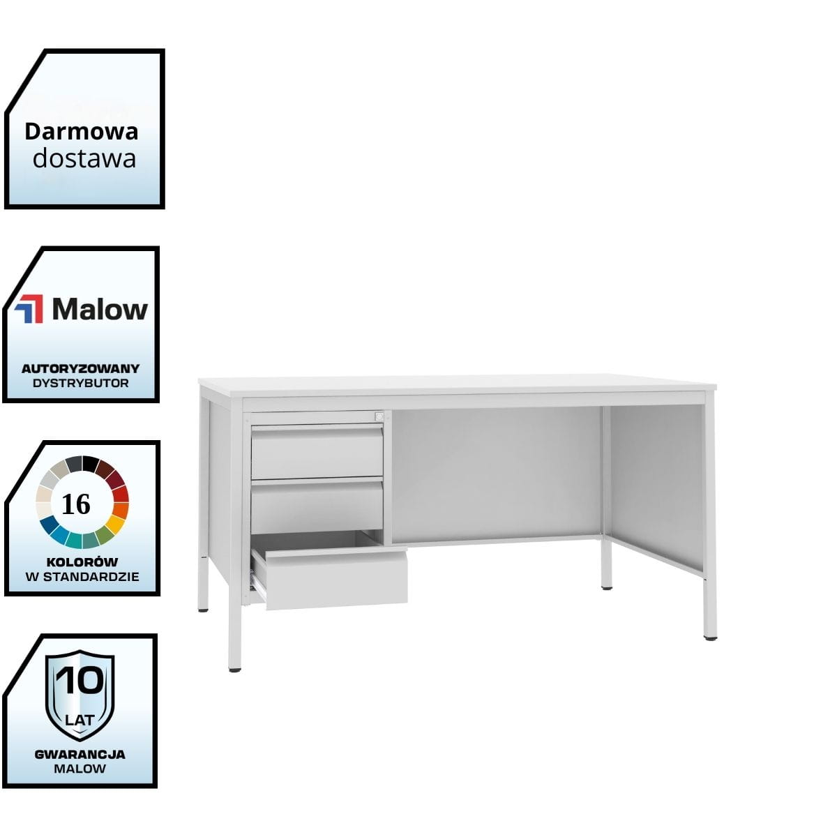 Biurko objęte jest 10-letnią gwarancją producenta Malow.