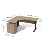 Biurko narożne z kontenerkiem 1600/600 × 1400/600 Dąb Coastland/Grafit (Opentech))