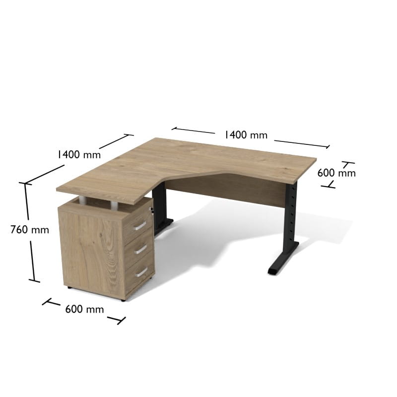 Biurko narożne z kontenerkiem 1400/600 x 1400/600 Dąb Coastland/Grafit (Opentech)