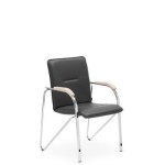 Zamów krzesło konferencyjne SAMBA – tapicerowane krzesło biurowe z chromowaną ramą i drewnianymi podłokietnikami, idealne do reprezentacyjnych przestrzeni.