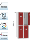 Szafka MSUS 322S wyposażona jest w cztery niezależne zamki cylindryczne, co zapewnia bezpieczeństwo każdej skrytki.