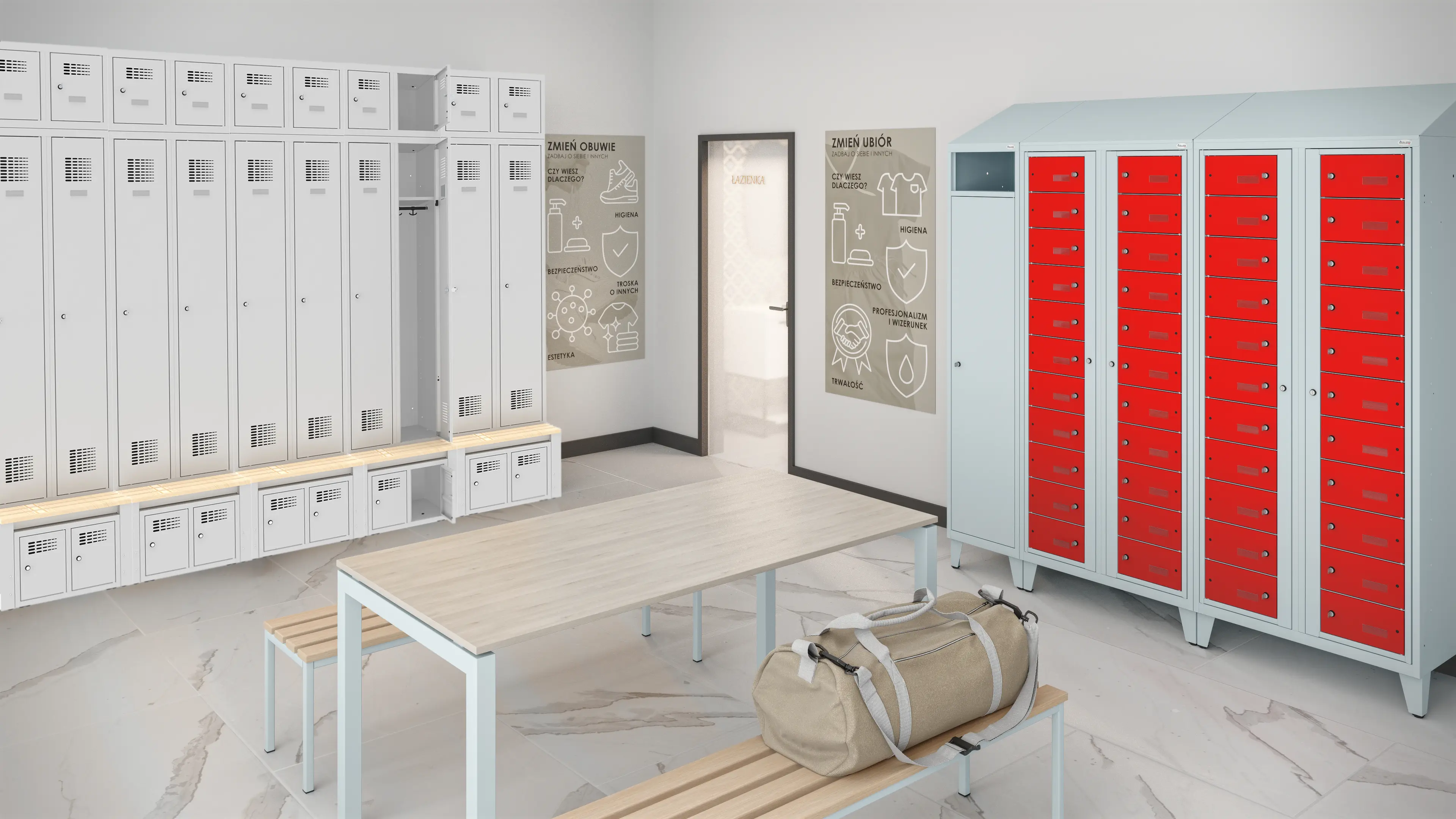 To rozwiązanie pełni funkcję szafki zamykanej na klucz, która sprawdzi się w przestrzeniach socjalnych i pracowniczych.