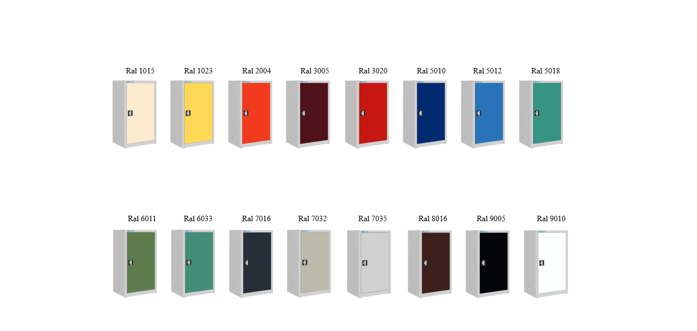 - Meble malowane proszkowo, dostępne w 16 kolorach RAL w standardzie.
