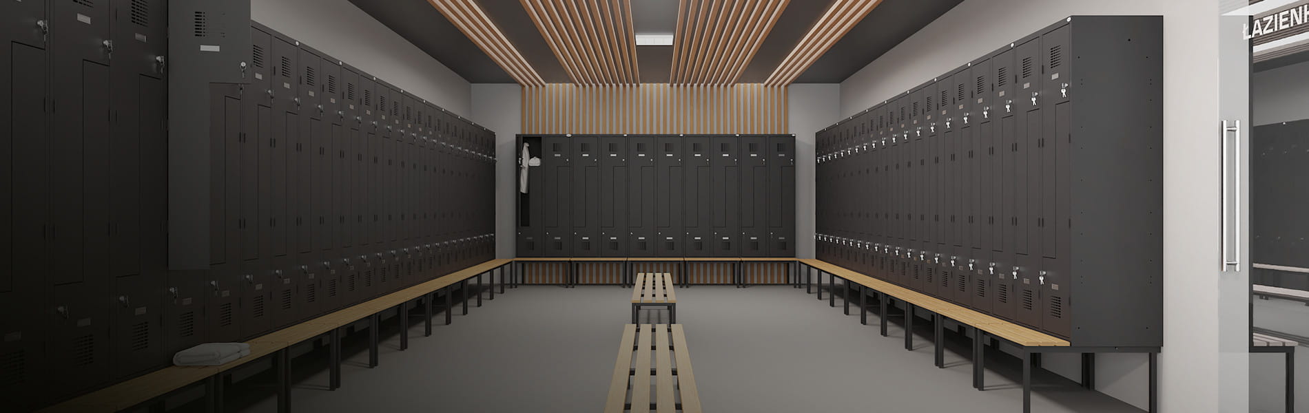 Wizualizacja szaf metalowych ubraniowych z drzwiami typu L w kolorze RAL 9005
