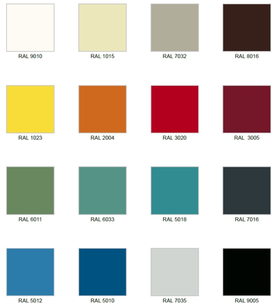 - Orzech włoski - Korpus oraz półki malowane proszkowo, dostępne w 16 kolorach RAL w standardzie.