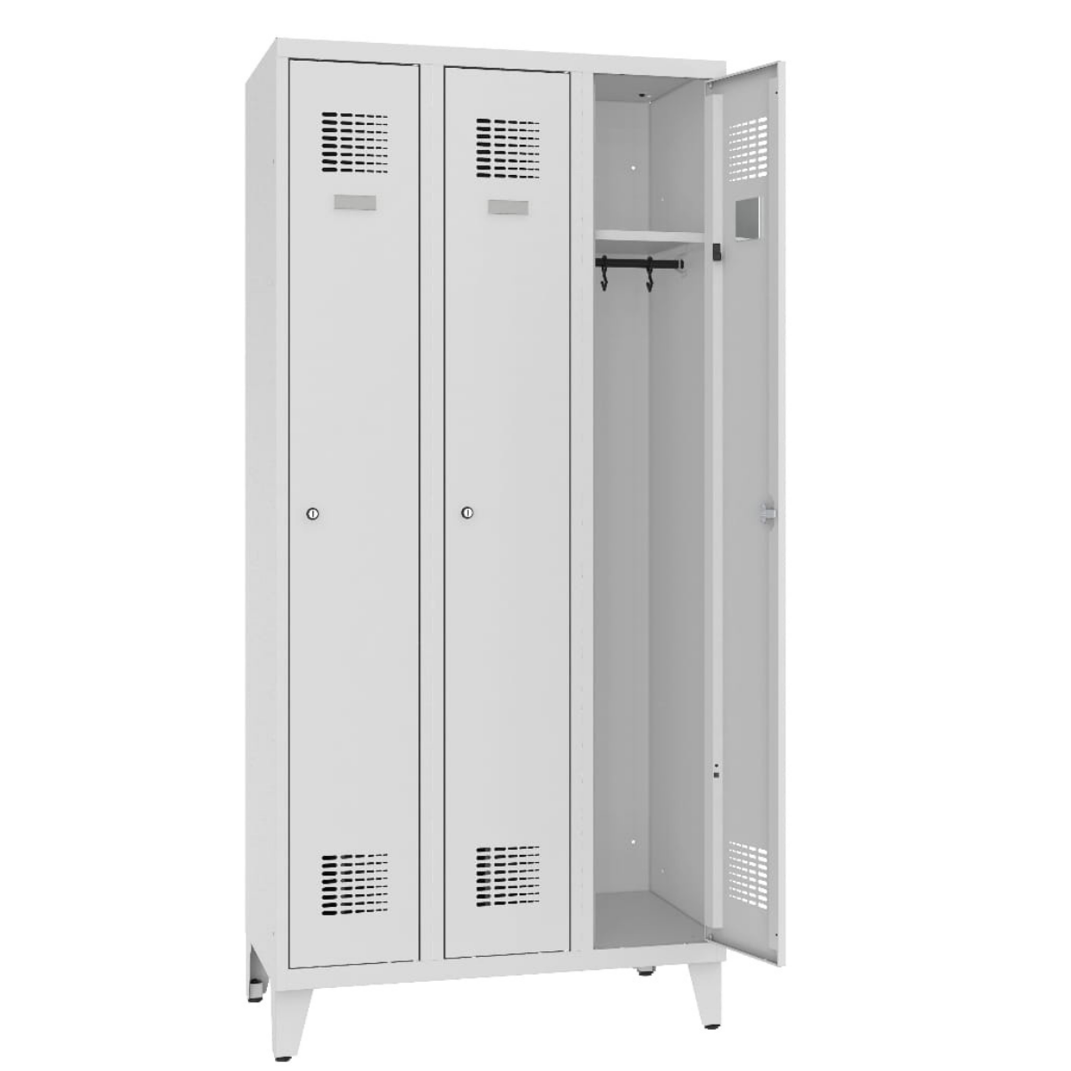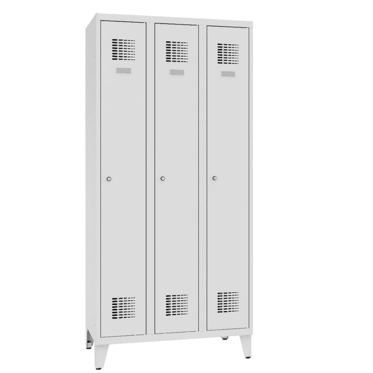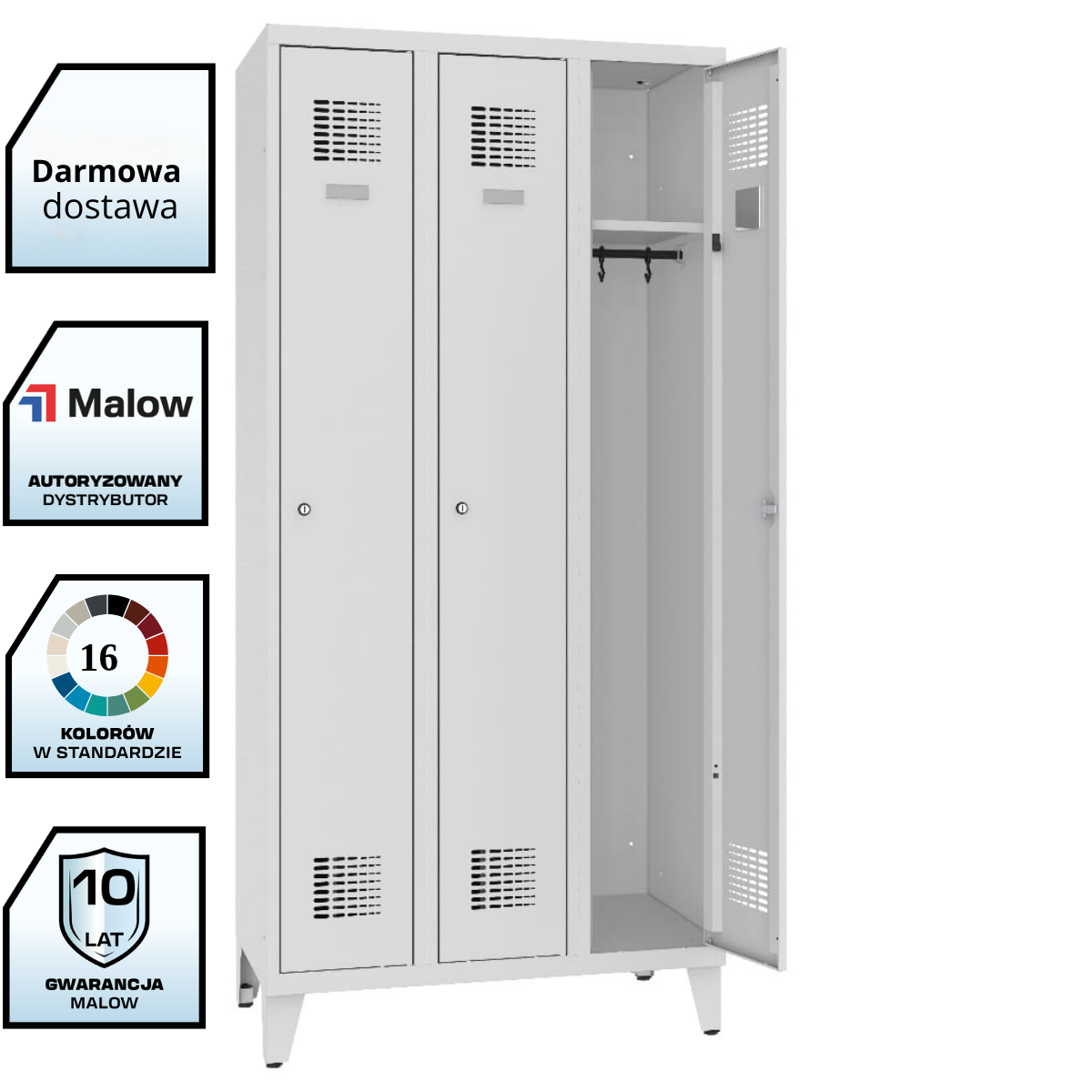 Szafa ubraniowa metalowa trzydrzwiowa na nóżkach Sum 331 W Malow - zamek cylindryczny zamykany w jednym punkcie