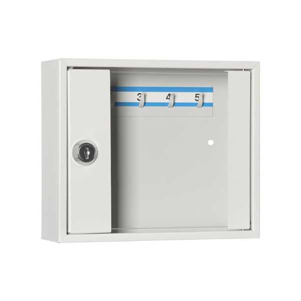 Szafka na klucze SK 5/S Leomar to kompaktowa metalowa szafka przeznaczona do przechowywania 5 kluczy, wyposażona w przeszklone drzwi, które umożliwiają szybkie sprawdzenie zawartości bez konieczności otwierania szafki.