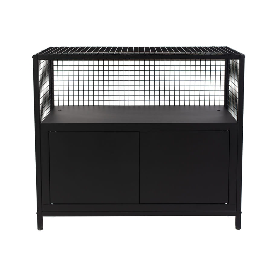 Regał LOV 2c został wykonany na bazie stalowego stelaża z profili 25 × 25 × 1,5 mm, co zapewnia mu stabilność i trwałość. Siatka metalowa z drutu o średnicy 3 mm nadaje konstrukcji lekkości wizualnej i podkreśla charakter mebli industrialnych loftowych.