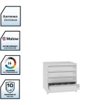 Szafa kartotekowa SZK 103 wykonana została z blachy stalowej o grubości 0,8–1,5 mm, co zapewnia wysoką stabilność oraz odporność na intensywną eksploatację. Centralny zamek ryglujący wszystkie szuflady jednocześnie skutecznie zabezpiecza dokumentację oraz dane osobowe.