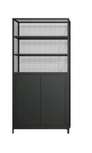 LOV 6c to nowoczesna, wysoka szafa metalowa loftowa, zaprojektowana jako część kolekcji mebli mieszkaniowych LOV. Smukła, pionowa forma, stalowa konstrukcja oraz ażurowe wypełnienie z siatki metalowej nadają meblowi wyrazisty, industrialny charakter, który doskonale wpisuje się w aranżacje loftowe i nowoczesne.