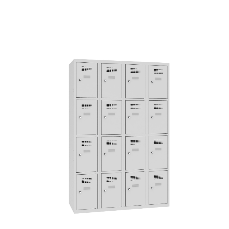 16 zamykanych skrytek (4 rzędy × 4 kolumny)