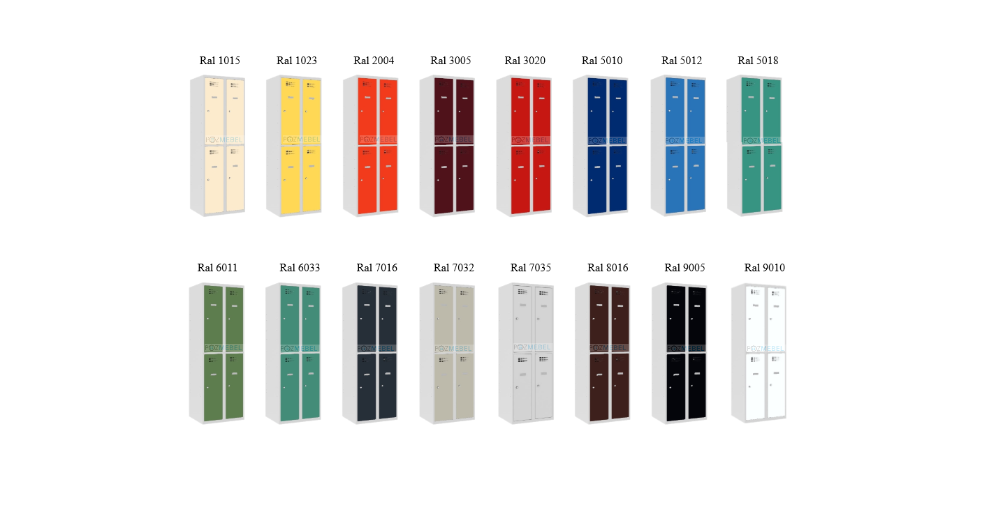 Dodatkowym atutem szafy jest możliwość zamówienia drzwi i korpusu w jednym z 16 kolorów z palety RAL – bez dopłaty. To rozwiązanie świetnie sprawdza się w przypadku wnętrz z określoną kolorystyką firmową lub instytucjonalną.