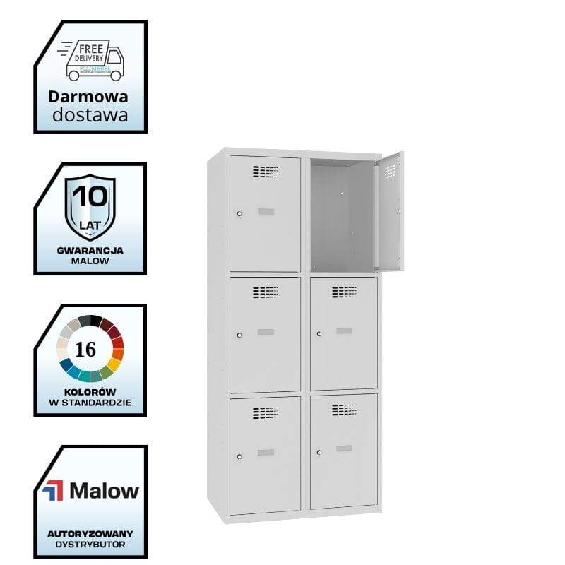 Szafa metalowa SUS 423 W MALOW – solidna szafka socjalna z 6 skrytkami do szatni pracowniczej, szkoły lub siłowni