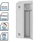 Produkt doskonale sprawdzi się jako szafa socjalna dwukomorowa z przegrodą, szafa BHP czysta–brudna, szafa ubraniowa z gniazdkiem i USB.