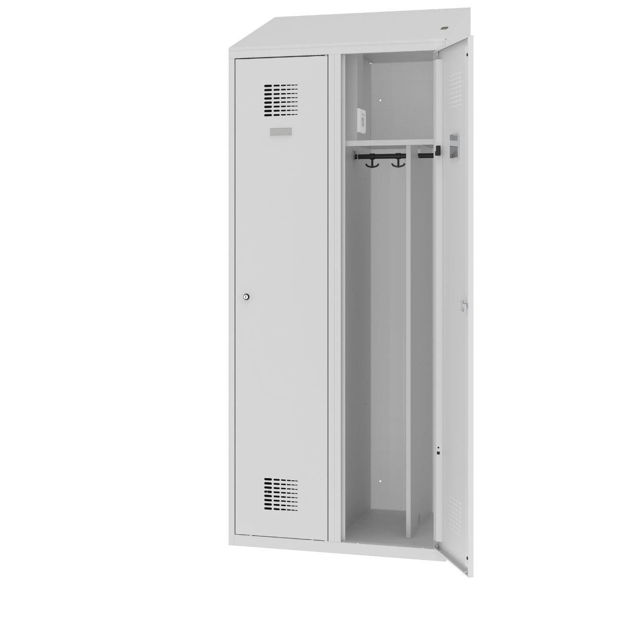 Szafa socjalna ubraniowa dwudzielna MSum 420v z przegrodą, gniazdkiem elektrycznym i daszkiem