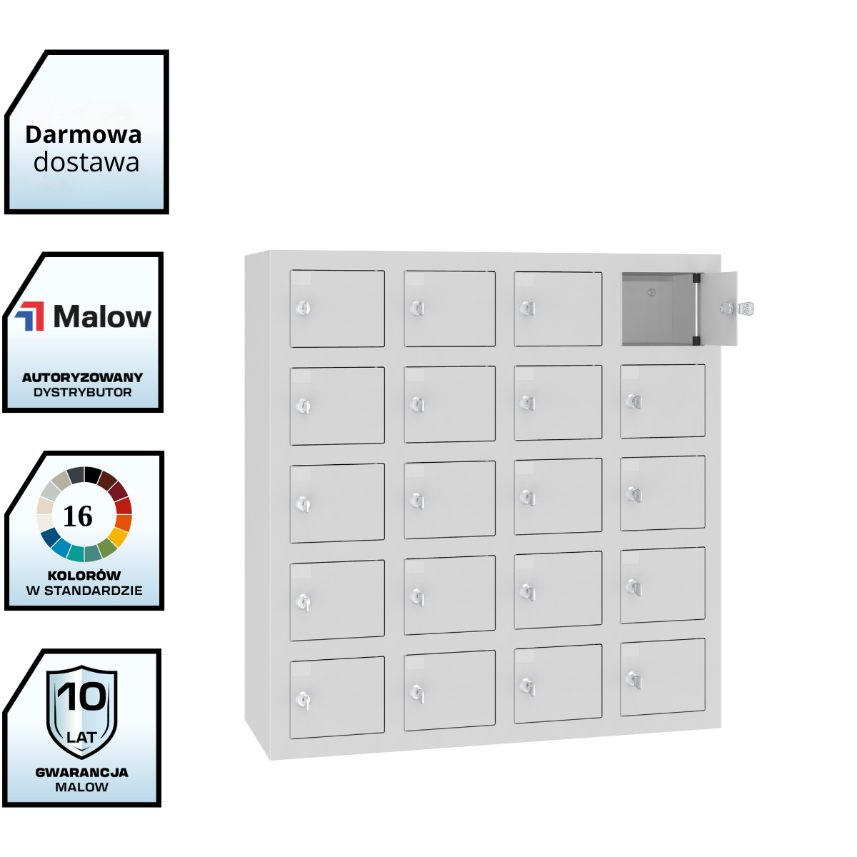 20 niezależnych skrytek zamykanych na klucz,