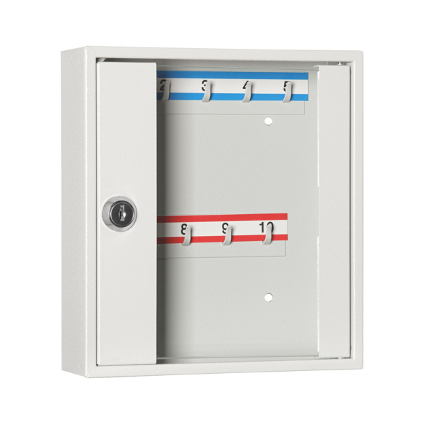 Model SK 10/S to funkcjonalna szafka na 10 sztuk kluczy, która pozwala utrzymać porządek i zwiększyć bezpieczeństwo przechowywania kluczy.