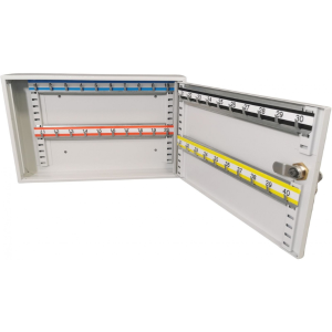 Model SKR 40 to szafka na 40 sztuk kluczy z regulacją listew, która umożliwia wygodne i uporządkowane przechowywanie kluczy.