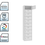 Model MSUS 4110 oferuje 10 indywidualnych skrytek, które zapewniają komfort i bezpieczeństwo użytkowania w przestrzeniach wspólnych.