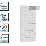 Model MSUS 4210 posiada 2 kolumny i 20 indywidualnych skrytek, co pozwala na obsługę większej liczby użytkowników przy zachowaniu przejrzystej organizacji.