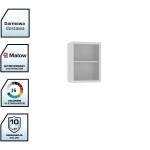 Wnętrze nadstawki wyposażone jest w stalową półkę o nośności do 65 kg, regulowaną co 25 mm. Ciągła perforacja umożliwia dopasowanie wysokości półki do rodzaju przechowywanych materiałów:
