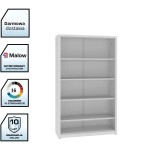 Regał wykonany jest z blachy stalowej o grubości 0,7 mm. Malowanie proszkowe oraz technologia cyrkonowania zapewniają wysoką odporność na korozję i estetyczne wykończenie.